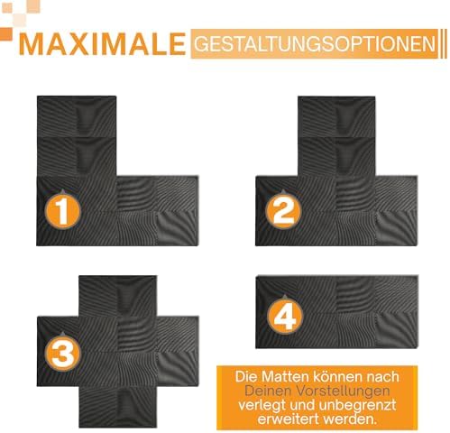 Die Matten lassen sich mühelos verlegen und sind einfach mit Seife und Wasser zu reinigen, was Ihnen die Wartung erheblich erleichtert.