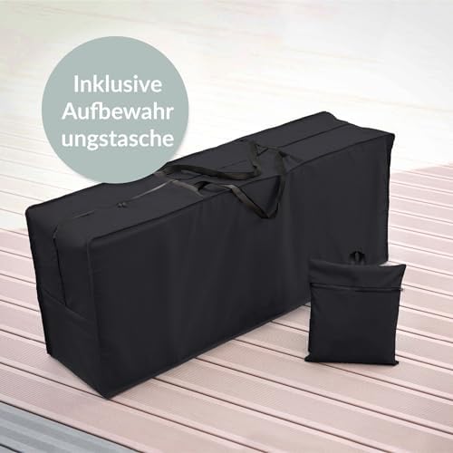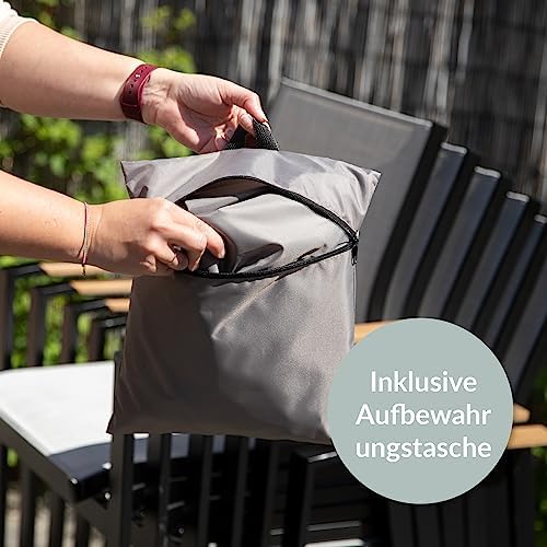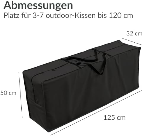 Die große Reißverschlussöffnung ermöglicht ein müheloses Verstauen Ihrer Sitzkissen. Darüber hinaus garantieren die stabilen Tragriemen, dass der Transport der Kissenbeutel komfortabel und einfach ist. Genießen Sie die Freiheit, Ihre Gartenpolster bei Bedarf rasch zu verstauen und wieder hervorzuheben.