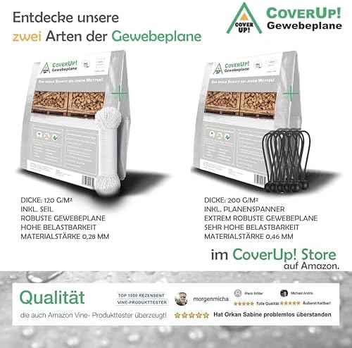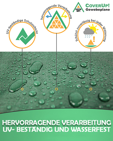 Wir legen großen Wert auf die Auswahl der Materialien und die Verarbeitung unserer Produkte. Durchdachte Details machen diese Gewebeplane zu einem langlebigen und verlässlichen Produkt. Ob Regen, Sonne oder Wind – die Plane schützt zuverlässig gegen Witterungseinflüsse und Schäden.