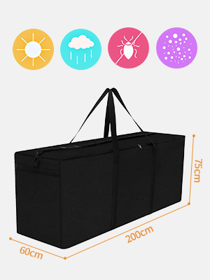 Mit großzügigen Abmessungen von 200 cm (L) x 60 cm (B) x 75 cm (H) bietet dieser XL-Aufbewahrungsbeutel ausreichend Platz für all Ihre Auflagen und Kissen. Sogar sperrige Gegenstände wie künstliche Weihnachtsbäume finden hier ihren Platz. Investieren Sie in die Verlängerung der Lebensdauer Ihrer Outdoor-Ausstattung und sorgen Sie für eine ordentliche, geschützte Aufbewahrung!