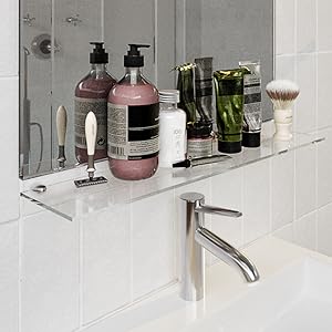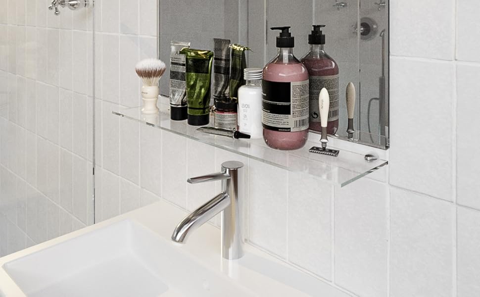 Gönnen Sie sich die elegante und praktische Lösung für Ihr Badezimmer – mit unserem hochwertigen Glasregal setzen Sie auf zeitloses Design und Funktionalität!