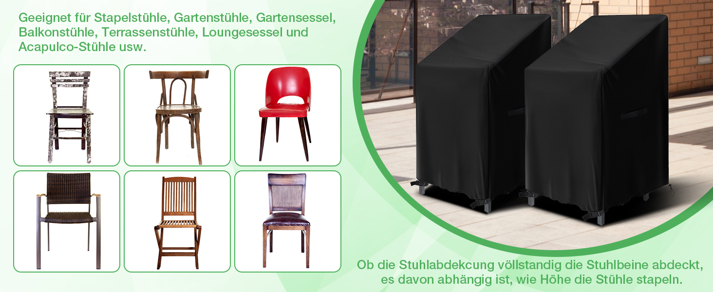 - Multifunktionale Nutzung: Eignet sich zur Abdeckung von bis zu 10 Stapelstühlen oder anderen Möbelstücken, perfekt für jeden Außenbereich.