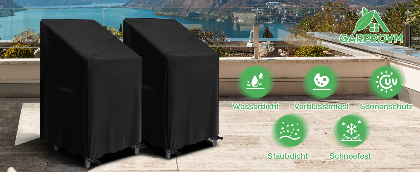 GARPROVM Schutzhülle für Gartenstühle – Wasserdichte Abdeckung für 2 Stapelstühle, Wetterfest & Robust für Balkon und Ga