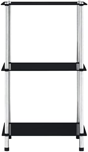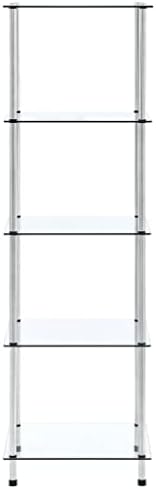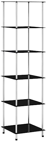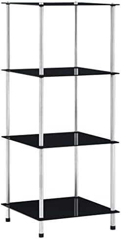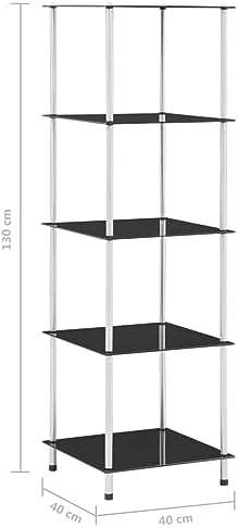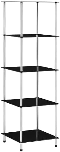 Glasregal von – 5 Ablagen aus gehärtetem Glas & Edelstahl in Schwarz, ideal für Wohnzimmer, Büro & Bad!