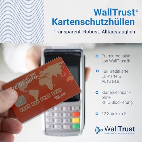 WallTrust Hartplastik Schutzhülle - 12 Stück - Eckfreies Design - Transparente Kartenhülle für sicheren Kreditkarten-SchWallTrust Hartplastik Schutzhülle – 12 Stück – Eckfreies Design – Transparente Kartenhülle für sicheren Kreditkarten-Sch