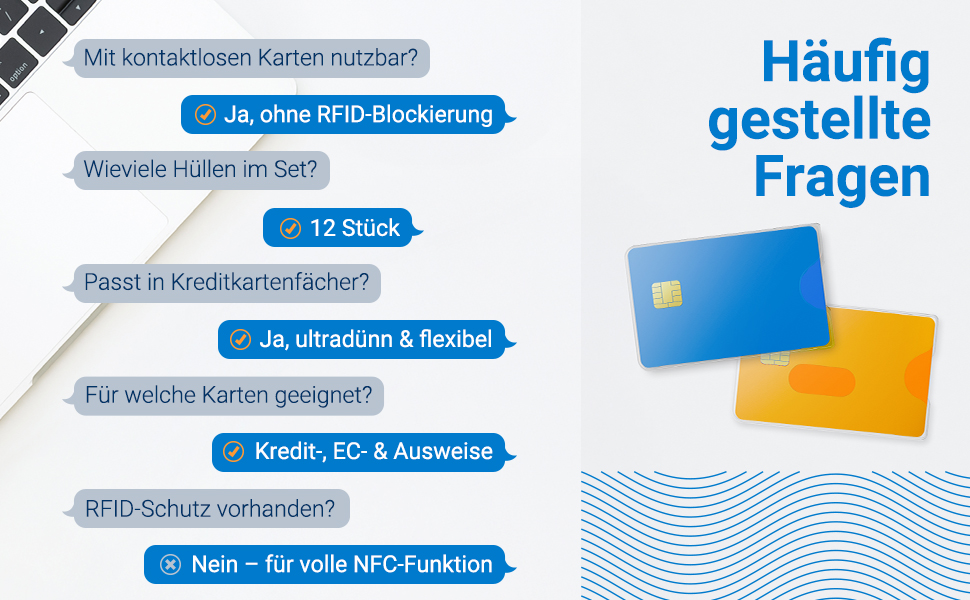 • Flexibles Set von 12: Schützen Sie eine Vielzahl von Karten (Bank, Mitgliedschaft, Gesundheit) mit einem praktischen Set von 12 Hüllen für vielseitige Nutzung.