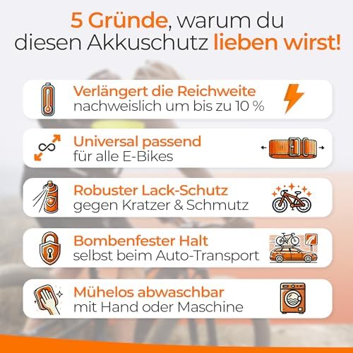 • Praktischer Transport-Schutz: Vollständiger Schutz für Akku und Akku-Schacht während des Transports am Fahrradträger.