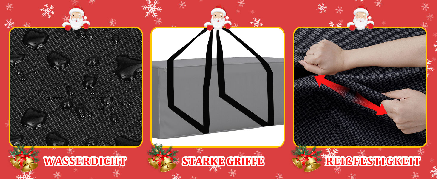 - Praktische Organisation: Hält Ihre Gartenauflagen ordentlich und zugänglich, sodass Sie jederzeit bereit sind für gesellige Stunden im Garten.